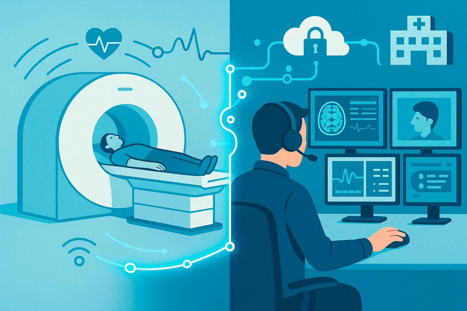 GE Healthcare commercialise les solutions Digital Expert Access® et nCommand Lite®. La première, disponible depuis 3 ans, est uniquement compatible avec les systèmes GE, dont elle permet de prendre les commandes à distance. La seconde, sur le marché français depuis 2025, est multiconstructeur et embarque des fonctionnalités supplémentaires telles que le chat et trois caméras vidéo. Elle est compatible avec le scanner, l’IRM et la TEP-TDM, indique Christophe Dias, directeur des ventes Imaging Digital Solutions pour la zone France – Benelux et Afrique Francophone.