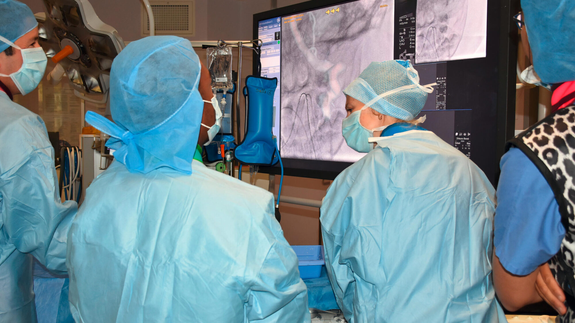 La concentration est à son comble dans la salle de neuroradiologie interventionnelle de l’hôpital Necker Enfants malades - Assistance publique - Hôpitaux de Paris (AP-HP). Une petite fille de tout juste deux ans et demi fait son entrée en salle d'opération dans les bras de Zahira, la manipulatrice radio, bercée au son d'une douce comptine pour enfants avant d'être endormie sous anesthésie générale. « Quand ils sont bébés, nous les endormons dans nos bras avant d'entrer en salle, nous leur faisons des câlins, cela les rassure, car elle a quand même un peu pleuré au début », témoigne Zahira. Et pour cause, l'opération que s'apprête à subir cette fillette est en effet particulièrement délicate.