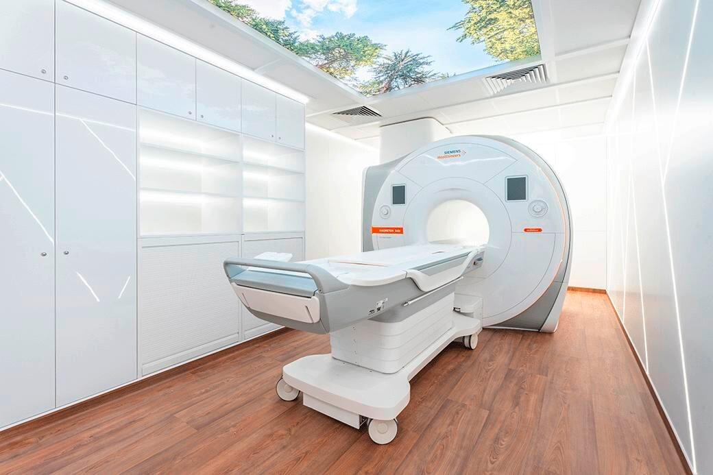Vue intérieure d'une nouvelle unité modulaire Agito Medical équipée d'une IRM Siemens SOLA 1.5T, alliant design et performance technologique.© Agito Medical